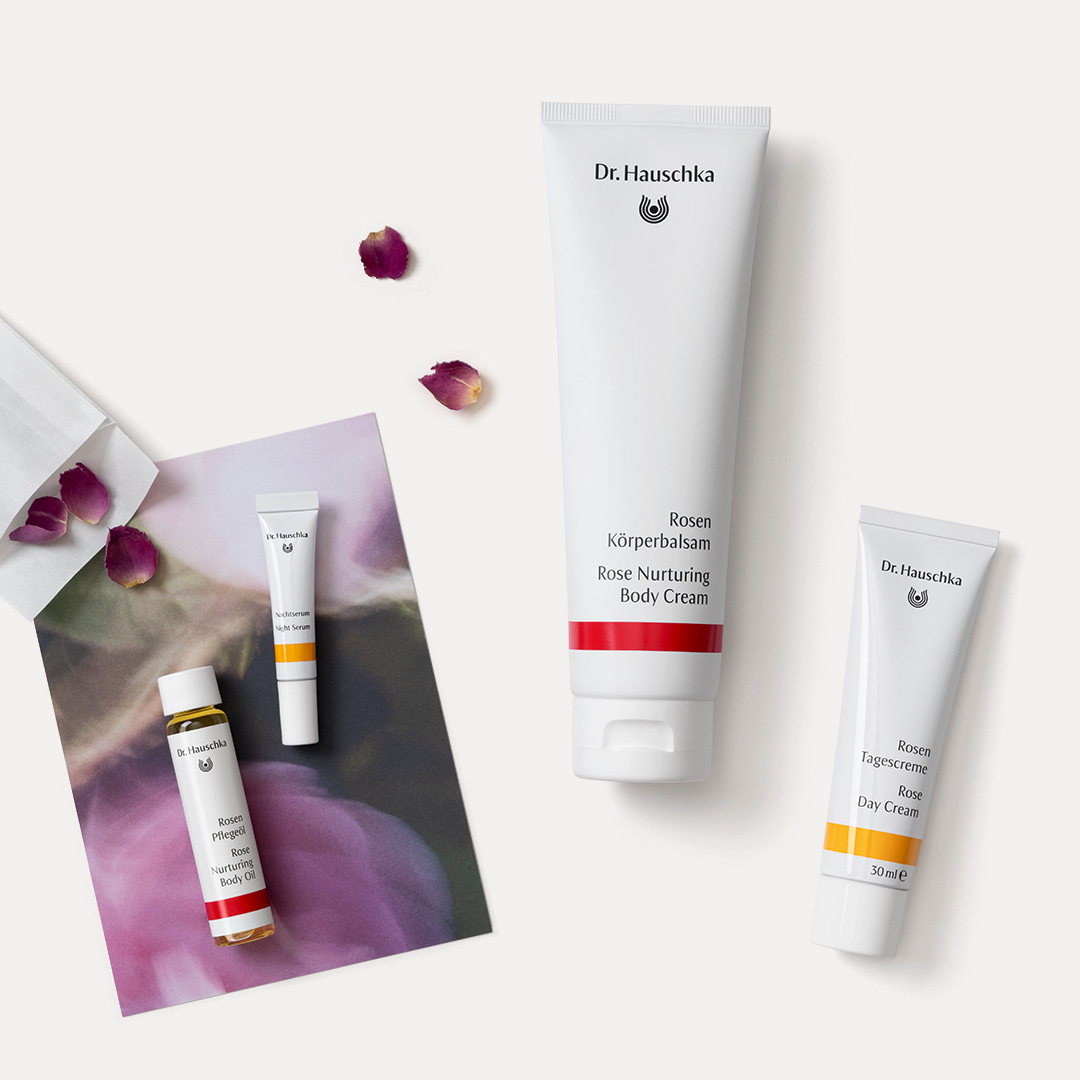 Rosen statt Blumen: Dr. Hauschka Rosenliebe Hautpflege-Set.